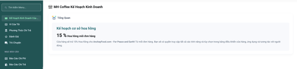 Kế Hoạch Cơ Sở Hoa Hồng:%15 – Đây là tỷ lệ hoa hồng mà cửa hàng phải trả cho hệ thống AnchayFood.com cho mỗi đơn hàng.