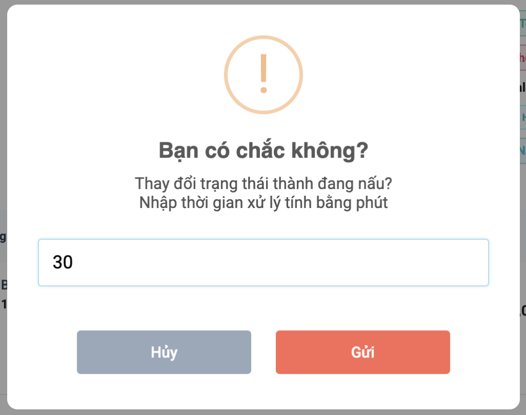 Hệ thống sẽ yêu cầu bạn nhập thời gian xử lý tính bằng phút.