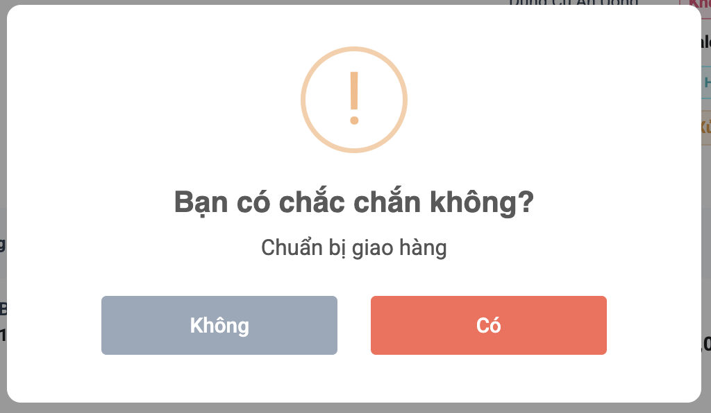 Một hộp thoại sẽ xuất hiện hỏi: “Bạn có chắc chắn không? Chuẩn bị giao hàng”.