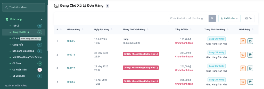 ✅ Bước 4: Tiến hành xử lý đơn hàng