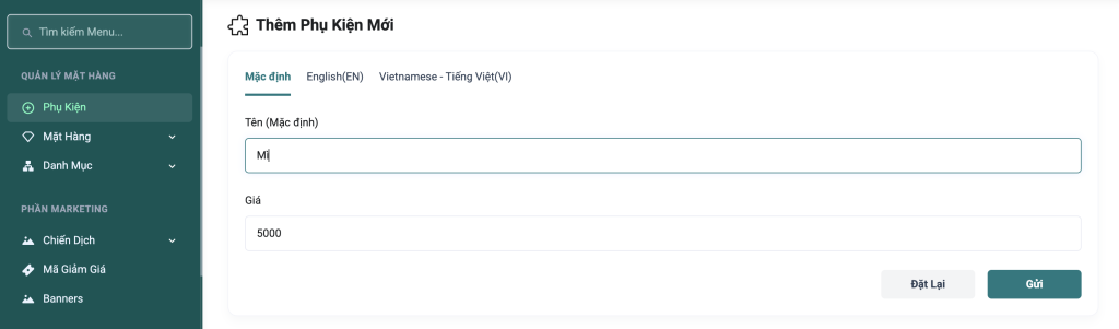 - Nhấn nút “Gửi” ở góc dưới bên phải để lưu thông tin phụ kiện mới.