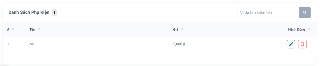 - Xóa: Nhấn vào biểu tượng thùng rác (🗑️) để xóa phụ kiện khỏi hệ thống.
