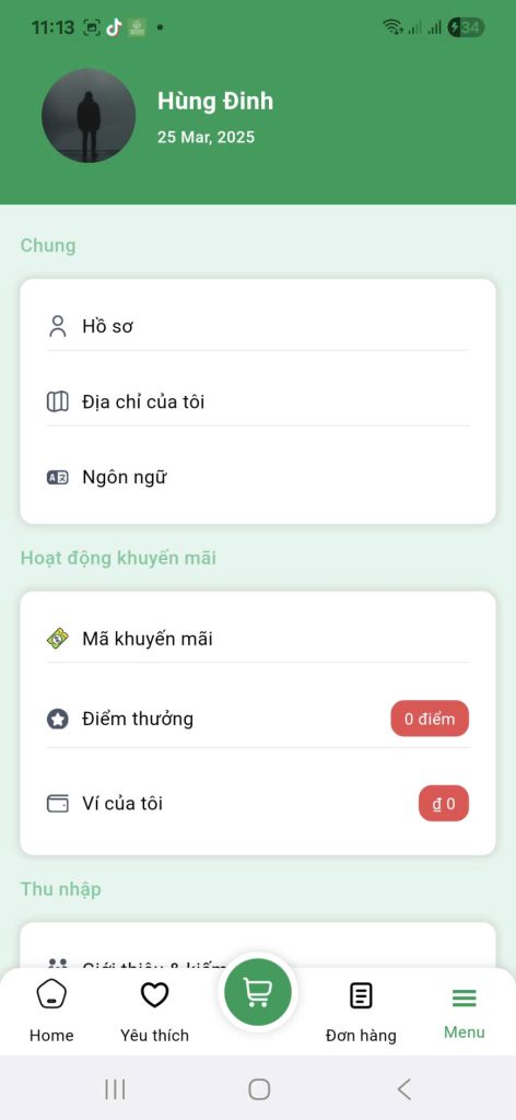 • Tích điểm khi đặt hàng: Mỗi đơn hàng thành công sẽ được quy đổi thành điểm dựa trên giá trị đơn.