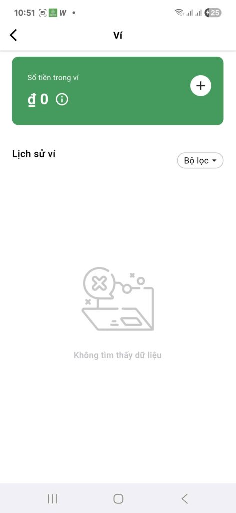 - Bạn sẽ thấy số dư hiện tại trong ví (ví dụ: 0đ).
