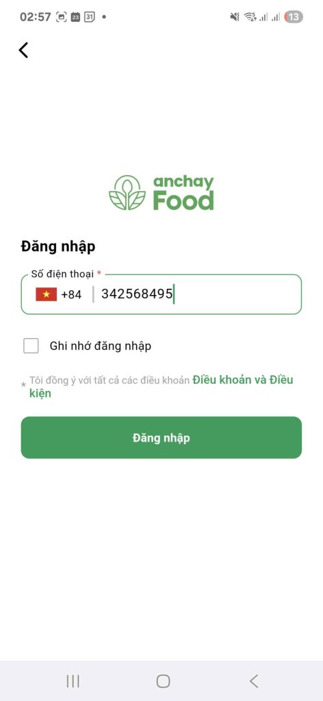 - Mở ứng dụng AnchayFood trên điện thoại.