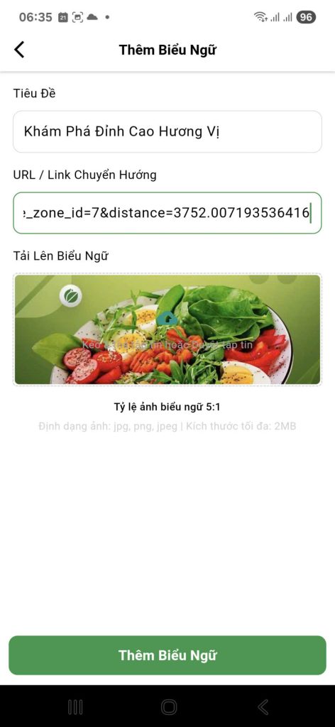 - Nội dung: Thông thường, hệ thống sẽ tự động điền một liên kết dẫn thẳng đến trang cửa hàng của bạn trên ứng dụng AnchayFood. Liên kết này thường chứa các tham số như
