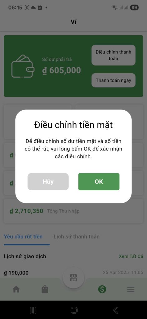 - Đảm Bảo Khớp Số Liệu Thực Tế: Chỉ thực hiện “Điều chỉnh thanh toán” khi bạn đã kiểm đếm tiền mặt thực tế và chắc chắn rằng số tiền bạn muốn thanh toán cho nền tảng là chính xác.