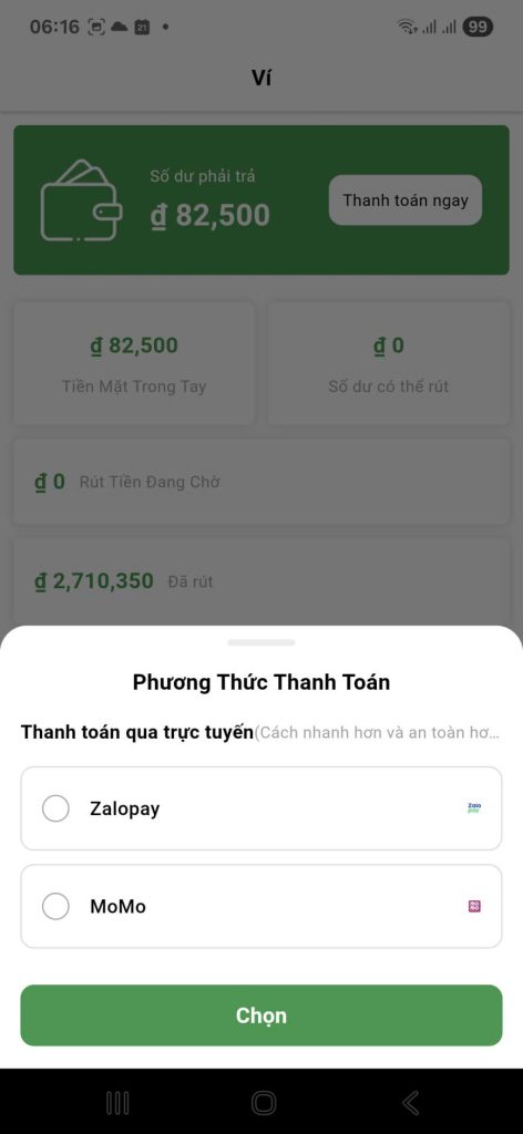 - Ưu Tiên Thanh Toán Online: Việc thanh toán qua Zalopay或MoMo giúp quá trình xử lý nhanh chóng, tự động và có lịch sử giao dịch rõ ràng.