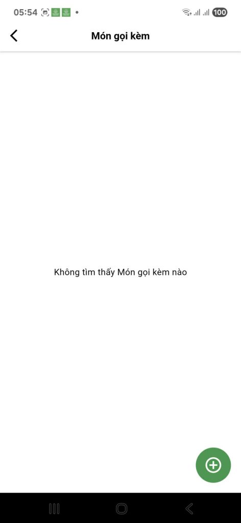 Sau khi nhấn vào mục “Món gọi kèm”, bạn sẽ được đưa đến màn hình quản lý chính.