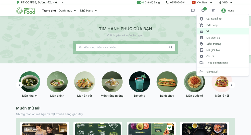 🎯 Với ví điện tử AnchayFood, việc đặt món ăn chay ngon và lành mạnh trở nên nhanh hơn, tiện lợi hơn và an toàn hơn bao giờ hết!