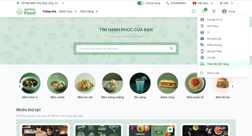 - Truy cập AnchayFood → Đăng nhập