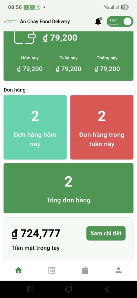 Khi bạn giao hàng và khách thanh toán bằng tiền mặt, số tiền này sẽ được tích lũy trong mục “Tiền mặt trong tay”. Để đảm bảo minh bạch và chính xác, hệ thống AnChayFood cung cấp hai tính năng quan trọng: