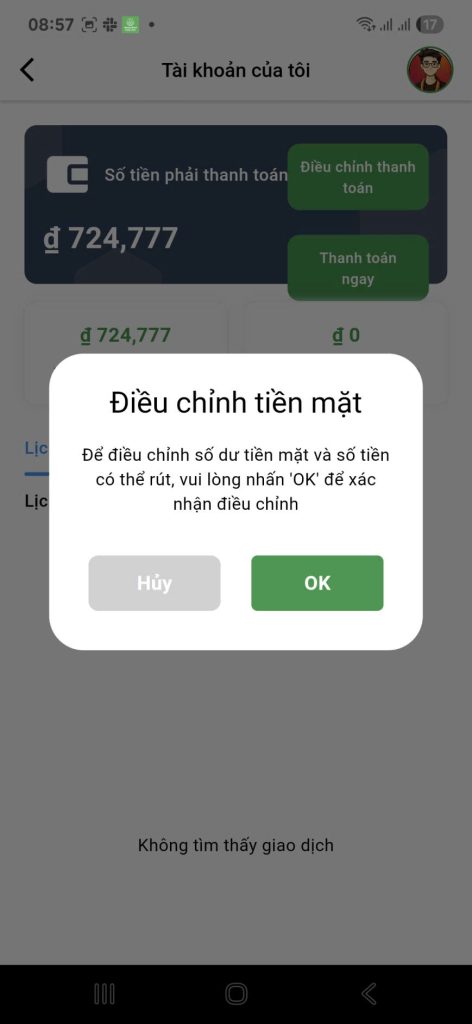 Để điều chỉnh số dư tiền mặt và số tiền có thể rút, vui lòng nhấn ‘OK’ để xác nhận điều chỉnh.
