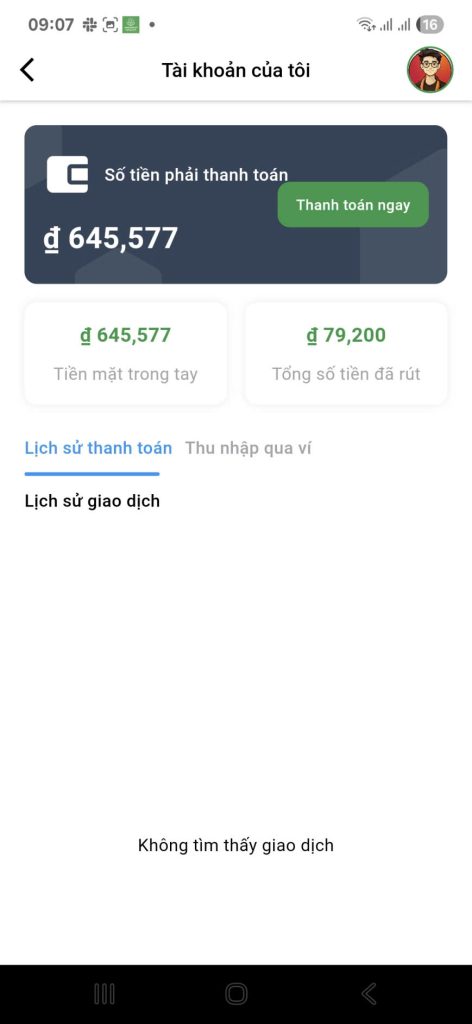 👉 “Thanh toán ngay” – để gửi tiền mặt về hệ thống và nhận thu nhập