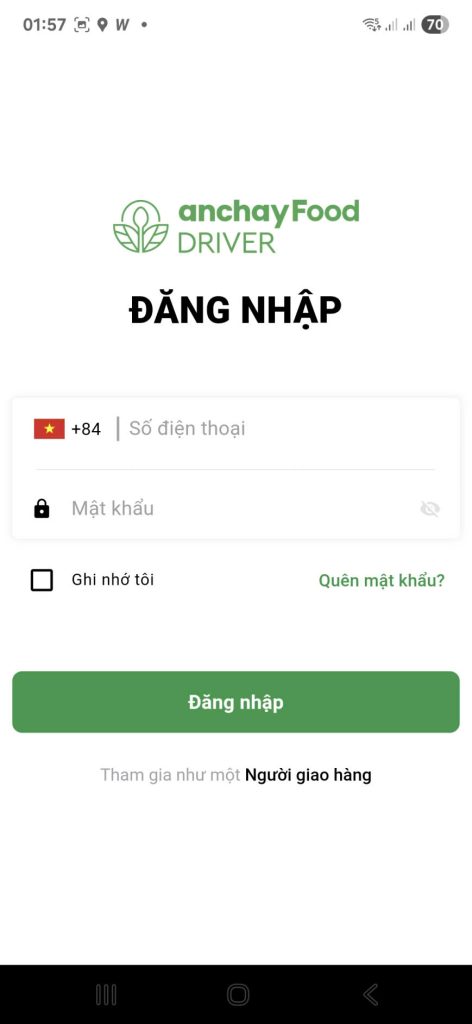 Bước 1: Truy cập ứng dụng AnchayFood Driver