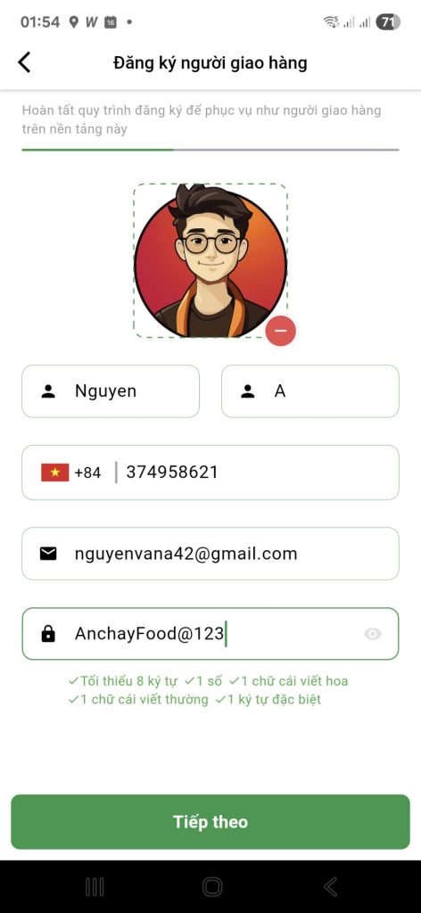 👉 Nhấn “Tiếp theo” sau khi điền đầy đủ thông tin.