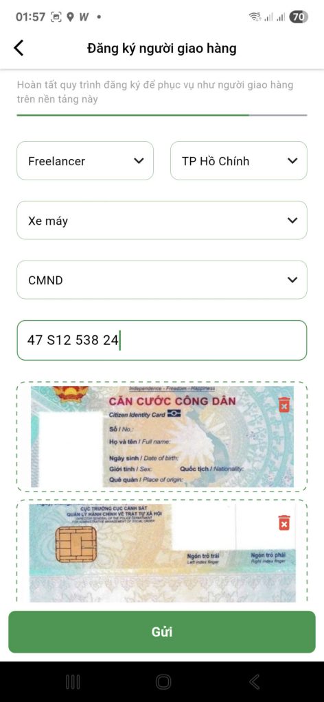 Sau khi nhấn “Tham gia như một Người giao hàng”, bạn sẽ được chuyển đến trang đăng ký với các trường cần điền: