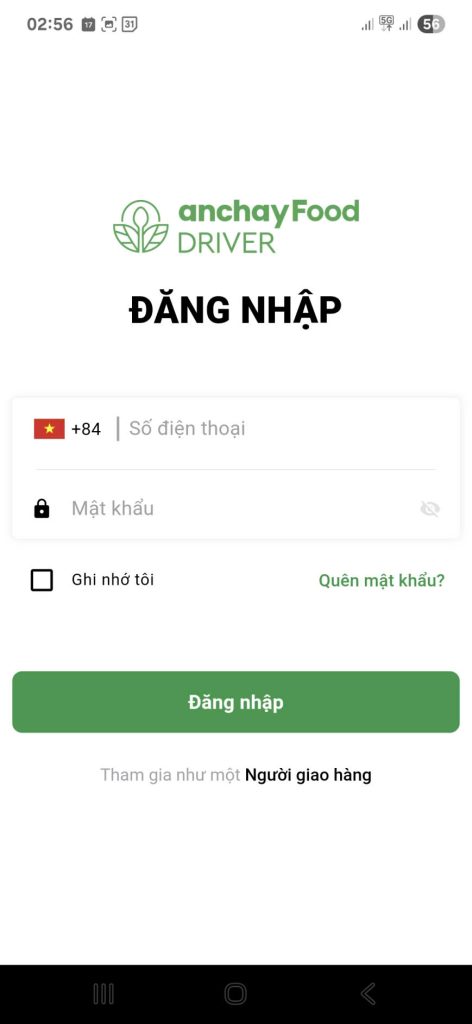 - Mở ứng dụng AnChayFood Driver.